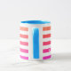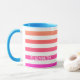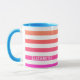 Lança-sol laranja e caneca listrada cor-de-rosa com seu nome personalizado em branco.