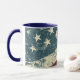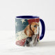 Esta caneca patriótica apresenta um retrato de aquarela de um lindo cão Beagle Hound colocado contra um fundo gigante da bandeira dos EUA. Você pode adicionar texto, se quiser, escolhendo Personalizá-lo.
