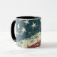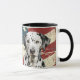Esta caneca patriótica apresenta um retrato de aquarela de um belo cão Dalmaciano colocado contra um fundo gigante da bandeira dos EUA. Você pode adicionar texto, se quiser, escolhendo Personalizá-lo.