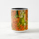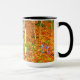Café Mug com a pintura Farmhouse de Gustav Klimt com Birch Trees (1903). Uma paisagem autóctone de folhas de laranja numa floresta de pássaros com lindas flores azuis. Um presente maravilhoso para fãs de Arte Nouveau e de Arte Austríaca.