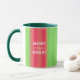 Add a festive touch to your daily routine with this hand painted merry and bright green and red mug that brings joyful color to every sip.