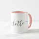 modern aestheticsimple elegant designsophisticated minimalist stylecutemonogrammed namescript lettering calligraphyeditable text templatetrendy aestheticcoffee mug bridal party gifthandwritten pink