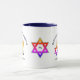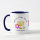 Hanukkah BARUCH ATAH ADONAI Monograma Mug. Design mostra um MENORAH dourado com uma ESTRELA multicolorido DE DAVID e cinza prateada DREIDEL. No topo há um texto curvo que diz BARUCH ATAH, ADONAI (Abençoado seja você, Ó Deus) e abaixo do texto lê-se HANUKKAH BLESSINGS. Este design é repetido no verso, e no centro há um dentro MONOGRAM PERSONALIZÁVEL - uma estrela colorida de David. TODO O TEXTO É PERSONALIZÁVEL, para que você possa personalizar com sua própria escolha de saudação e texto, por exemplo, mudar Chanucá para Chanukah, etc. Outras versões estão disponíveis na Coleção HANUKKAH por Designs Berean.