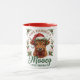 Celebrate the holidays with a touch of farmhouse charm featuring this adorable "Have Yourself A Mooey Little Christmas" design. This delightful artwork showcases a fluffy Highland cow calf dressed for the season in a classic red Santa hat, a festive holly berry crown, and a dapper red plaid bow tie. The humorous pun and whimsical illustration style make it an instant favorite for spreading cheer.