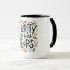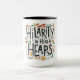 Whimsical e brincalhão: O texto "Hilaridade em Heaps Altos" é escrito em um estilo colorido, manchado com rabiscos brancos e sotaques. A design é divertida e alegre, e seria perfeita para a caneca de uma criança
