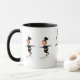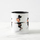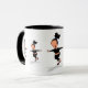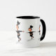 Hilda feliz voa nos círculos em torno de sua caneca de café.
