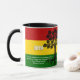 Mug de MÊS de HISTÓRIA NEGRA moderna e na moda com HISTÓRIA NEGRA 24.7.365 em tipografia branca a negrito na frente, e a popular citação de MARCUS GARVEY e um MONOGRAMA TRIPLO na parte de trás. A design mostra uma imagem em árvore dupla definida em relação às cores rasta de vermelho, amarelo e verde. TODO O TEXTO É PERSONALIZÁVEL para que você possa personalizar o texto tanto ou quanto quiser, fazer este presente de excelente para aquela pessoa especial, especialmente durante o Mês da História Negra, e para os aniversários e Natal. Muito mais presentes BHM e itens correspondentes disponíveis em Designs Berean. Uma versão pan-africana semelhante também está disponível.