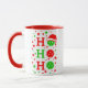 Esta caneca de Natal de picleball faz um presente perfeito para qualquer amante de picleball. O design apresenta um gráfico HO HO HO onde a letra O é substituída por uma pickleball. As cores incluem verde claro e vermelho.