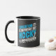 Engraçado hóquei temático caneca com texto azul e branco sobre fundo negro lendo Educação é importante mas hóquei é importante!