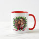 This ceramic coffee mug is shown in a festive holiday wreath print with a custom sample photo, customize and edit and place your photo in with this template.