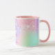 A trendy holographic background with unicorn and rainbow pastel colors in pink, purple, rose gold, mint green. Decorated with pink faux glitter dust. Personalize and add your first name, monogram initials and full name. The first name is written with a modern hand lettered style script.