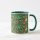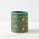 Café Mug com um padrão adorável, costura de mantimentos - tesouras, botões, manchas de fio, agulhas - espalhadas no campo verde escuro. Esse design, elaborado a partir de colagem de papel feita à mão, faz um presente de excelente para artesãos e esgotos. © Julia Khoroshikh www.juliakhoroshikh.art #coffeetime #giftforcrafter #homehobbies #haberdashery
