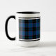 Caneca de café com tartã para Clan Hume and Home, e suas sebes, incluindo Eaton e Greenlaw. Padrão brilhante de xadrez royal azul e preto escocês de 1842, com sotaques laranja e verde.