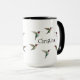 Mug personalizado para amantes de beija-flores apresentando um charme de beija-flores de garganta rubi. O estilo da fonte, o tamanho da fonte e a cor podem ser alterados clicando em "personalizar mais". Todas as imagens de pássaros são tiradas do trabalho artístico original.