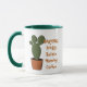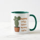 Cactus em pote de flor ilustra a caneca de café de 11 oz com o texto "Aviso: Muito Antes Do Café De Manhã". caneta desenhada à mão e efeito de tinta. O texto é editável. Nós também temos este design numa caneca de 15 oz.