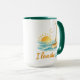 Enjoy your favorite hot or cold drink with this stylish combo mug featuring a peaceful ocean sunset sailboat illustration and the cheerful phrase “I Love the Sea.” The bright white exterior highlights the artwork beautifully, while the vividly glazed rim and handle add a pop of rich color for a modern, eye-catching look.