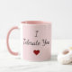 Start every morning with a smile (or a playful eye-roll!) with this “I Tolerate You ♥” mug. Featuring elegant script text in black with a red heart on pink background, this mug is perfect for couples with a cheeky sense of humor.