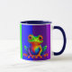 Un très beau mug personnalisé avec un dégradé de couleurs vives, Une grenouille amusante, assise, nous observe attentivement. Ses gros yeux globuleux semblent nous scruter. Une image drôle pour vous plaire.