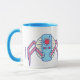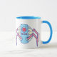 Caneca Ilustração de Anel de Aranha-Robô Azul Retro