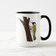 Um Pica-Pau Verde ilustrado da vista lateral. Este pássaro fofo tem seu talão de alcance e agarrado a uma árvore.