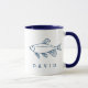 NewParkLane - Caneca náutica personalizada, com uma ilustração simples e mínima da linha de peixes em azul lacrimogêneo / índigo contra fundo branco. Com um modelo de texto de tipografia moderno para seu nome ou outra mensagem Todos os estilos, cores e tamanhos de texto podem ser modificados para ajustado de suas necessidades. Design sofisticado para qualquer decor do tipo náutico ou costeiro. Veja esta Coleção de Temas de Recife de Coral para obter itens correspondentes, e divirta-se, misture e combine! Você tem desejos pessoais específicos de design? Sinta-se livre para me contactar.