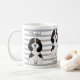 Caneca de café bonito que caracteriza uma ilustração de um Spaniel de rei Charles descuidado. Cor customizável e textos do fundo. Presente perfeito para o proprietário do Spaniel de rei Charles do amante ou dos Cavalier do cão.