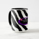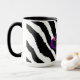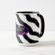 Um impressão de pelo de zebra clássico acentua esta caneca, um oval roxo com sotaques estelares. Alterar estilos conforme desejado.