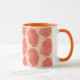 Mug em um padrão de impressão de bloco, baseado em uma casca de couro cabeludo, em laranja de coral em um fundo de coral pastel