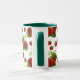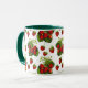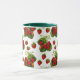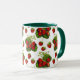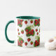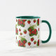 Caneca de café num impressão espalhado de morangos e plantas de morango adaptado a partir de desenhos botânicos antigos - bagas vermelhas profundas num fundo branco