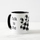 "Fale com a Pata" com a impressão em branco e preto de xadrez de búfalo. O texto é editável.