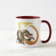 Para tudo com um começo conhecido com "D": canecas personalizadas para amantes do dragão e geeks da fantasia! Inicial de vidro Dourado de Nouveau da arte com um enrolamento chinês do dragão em torno dele.