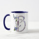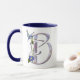 Uma pia batismal extravagante "B", textured no metal e decorada com as corriolas que enrolam em torno do lado esquerdo mais uma aterragem colorida da borboleta nas flores.