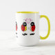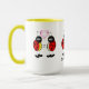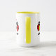 Lovebugs vermelhos que guardaram as mãos na frente de um coração cor-de-rosa em um campo branco. O quadro, o punho, e a borda são amarelos.