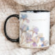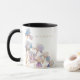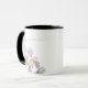 Esta xícara elegante apresenta íris pintadas à aguarela em tons de lilás e azul pervinca. Toques sutis de dourado adicionam um elemento brilhante e mágico. O design coordena com o conjunto de casamento Íris Elegante, tornando-o um presente personalizado perfeito para damas de honra em um casamento de primavera ou verão.