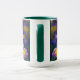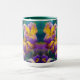 Caneca Iris Folhas plorais roxas e azuis-douradas