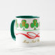 A caneca de café irlandesa alegre da campainha do Natal faz um plantador agradável para a peça central decorativa, ou para ajustes de lugar do partido.