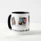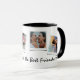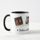 Caneca fofa com 4 fotos à sua escolha e o texto 'Irmãs são as melhores amigas' com dois pequenos corações pretos.