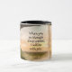 A caneca de café com Escritura Inspirativa retrata uma linda cena através de uma caverna com o sol brilhando numa cascata. Ele apresenta uma parte da Bíblia Verse Isaiah 43:2, "Quando você passar por águas profundas, eu estarei com você."