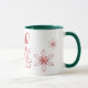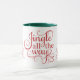 Aqui está um café elegante ou uma caneca de chocolate quente para o Holiday Season! Apresenta imagens bonito em flocos de neve de ornamentado vermelho, com texto estilizado no meio que diz "Jingle All the Way". Festivo, e parece excelente na maioria das cores oferecidas.