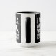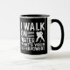 Uma caneca do tema do hóquei com um jogador branco de hóquei em silhueta com bastão de hóquei e um texto branco que diz "I Walk On Water What's Your Superpower"?