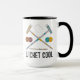 Se você já jogou croquete, então você sabe que é um jogo legal e malvado, como eles dizem no caminho de Nova Inglaterra. Mostre o seu amor por este jogo de quintal com esta engraçada caneca de café que mostra ilustrações de uma grande engrenagem de croquet, incluindo mallets, bolas e, claro, um wicket com a brincadeira engraçada nas palavras slogan WICKED LEGAL abaixo em letras negros.