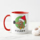 Um prato de Natal festivo e alegre em um chapéu de Papai Noel.