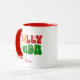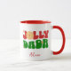 Imagem de tipografia de ranhura retrorativa personalizável caneca de café para pais. A design apresenta o texto "Jolly Dada" em tipografia de entalhe vermelha e verde com elementos florais coloridos e bonitos. O nome pode ser facilmente personalizado. Faz o melhor presente personalizado para você, seus amigos, familiares e até mesmo vizinhos. Temos mais de 45 canecas de Natal em design retrô, aquarela e tipografia engraçada baseada em nossa coleção que vocês definitivamente amarão. Feliz Natal!