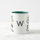 Personalized JOY IN JESUS Christian Christmas mug with CUSTOMIZABLE MONOGRAM, bold black script typography and holly. Ideal personalized drinkware during the festive season, with a strong Christmas message of joy in Jesus all year round. You can PERSONALIZE with your monogram or initial at the center. Matching gifts available.