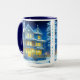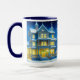 Joyeux Noël Bonito caneca de café Blue Christmas House.