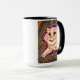 Café Mug com pintura animal de Louis Wain Cats Caleidoscópio III (1860-1939). Um gato branco psíquico é rodeado por cores vívidas de roxo, azul, verde e amarelo. Um presente maravilhoso para amantes de gatos e arte inglesa.