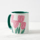 Uma pintura aquosa inspirada em bonito tulipas vivas recebidas como presente. Os florais cor-de-rosa lisos são elegantes e encantadores para serem vistos em qualquer sala. Faz um belo presente de caneca para um familiar ou amigo.