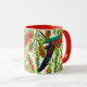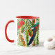 Este papagaio-d'água e uma xícara de café florescente é uma bela maneira de ter o café da manhã! Este café ou uma caneca de chá com padrão apresenta papagaios-rei realistas e flores de Callistemon. Excelente de presente para todos os seus amigos ou família Aussie.
