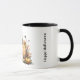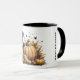 Esta caneca de férias do Halloween sazonal apresenta uma imagem gerada por IA de um doce gatinho preto e branco com um chapéu de bruxa. Ele está sentado entre uma variedade de abóboras e abóboras e tem algumas folhas de outono e flores e borboletas pretas ao seu redor. A imagem é criada em um estilo inicial de lavagem com aquarela. O texto diz, "Feliz Dia das Bruxas", mas você pode mudá-lo e adicionar seu nome se preferir. Use os vários estilos de fonte e cores diferentes do Zazzle para personalizar de acordo com sua preferência ou deixe o vazio, se preferir. Zazzle também tem muitos planos que você pode escolher, assim como ícones que você pode adicionar para fazer a imagem sua. Divirta-se fazer como quiser! Se precisar de ajuda para personalizar este design, por favor, não hesite em contactar-me, e ficarei muito feliz em ajudá-lo. Pode contactar-me no endereço KarenCoffelt@wolfmoonartanddesign.com ou através do Zazzle clicando no botão Chat (por favor, tenha em atenção que não estou disponível 24 horas por dia, 7 dias por semana, mas que lhe devolverei o mais rapidamente possível). Obrigados para procurar!