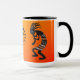 Kokopelli e Símbolo Sol Nativo Americano com um fundo laranja gradiente